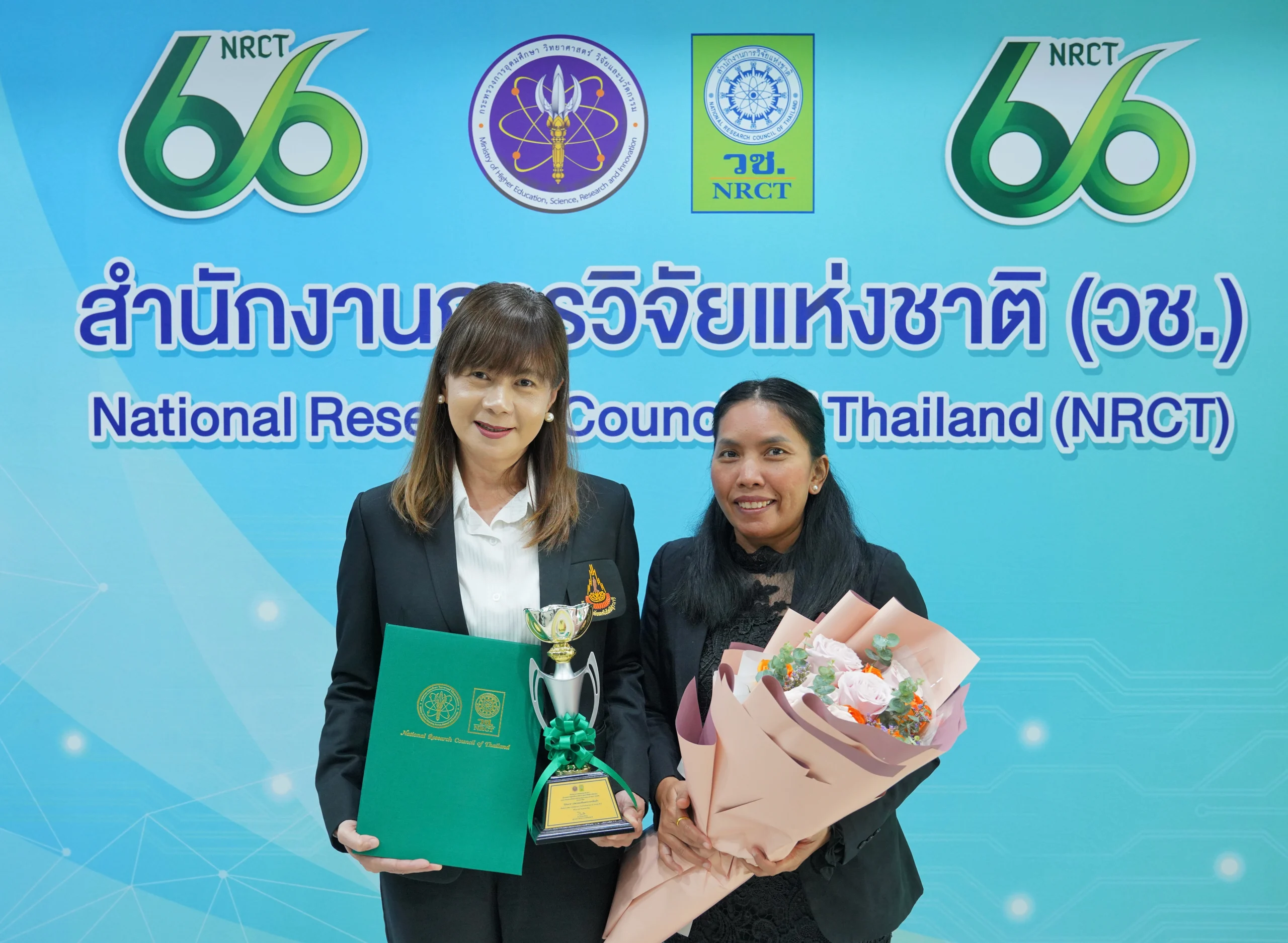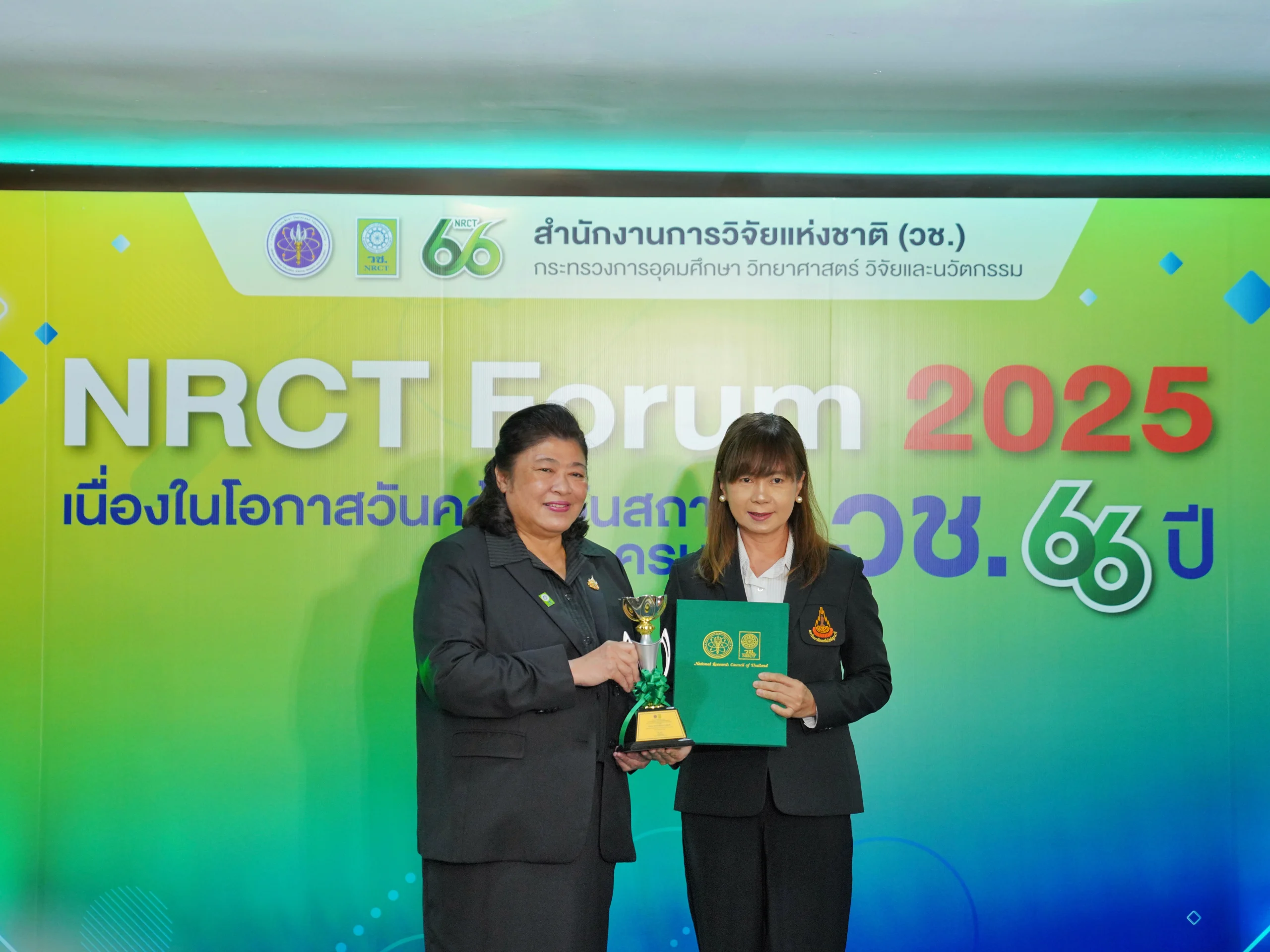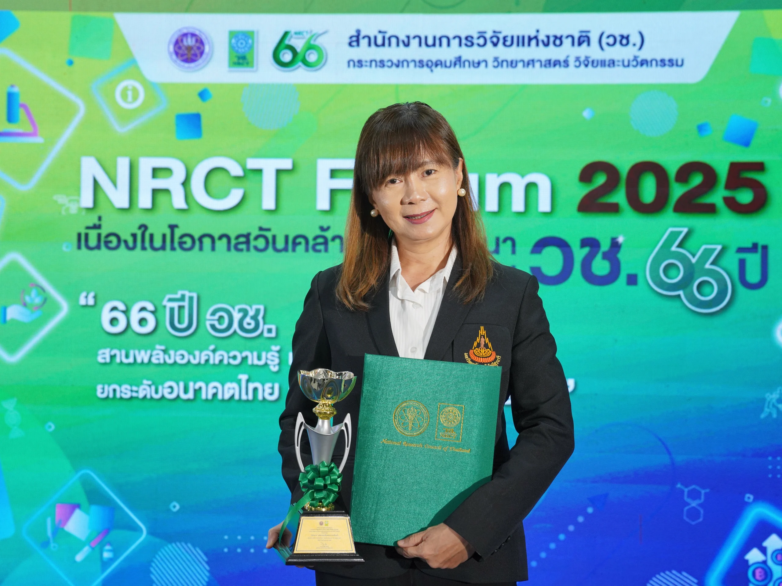 สำนักวิชาเทคโนโลยีการเกษตร มหาวิทยาลัยเทคโนโลยีสุรนารี ขอแสดงความยินดีกับ รองศาสตราจารย์ ดร.อมรรัตน์ โมฬี อาจารย์ประจำสาขาวิชาเทคโนโลยีและนวัตกรรมทางสัตว์ สำนักวิชาเทคโนโลยีการเกษตร มหาวิทยาลัยเทคโนโลยีสุรนารี เนื่องในโอกาสได้รับรางวัลผลงานวิจัยและนวัตกรรมตอบโจทย์ประเทศ NRCT AWARD 2025 จาก สำนักงานการวิจัยแห่งชาติ (วช.) จากผลงานเรื่อง "ไก่โคราช" นวัตกรรมเพื่อลดความเหลื่อมล้ำ เมื่อวันที่ 25 พฤศจิกายน 2568 ณ งาน NRCT Forum 2025 ณ สำนักงานการวิจัยแห่งชาติ (วช.)