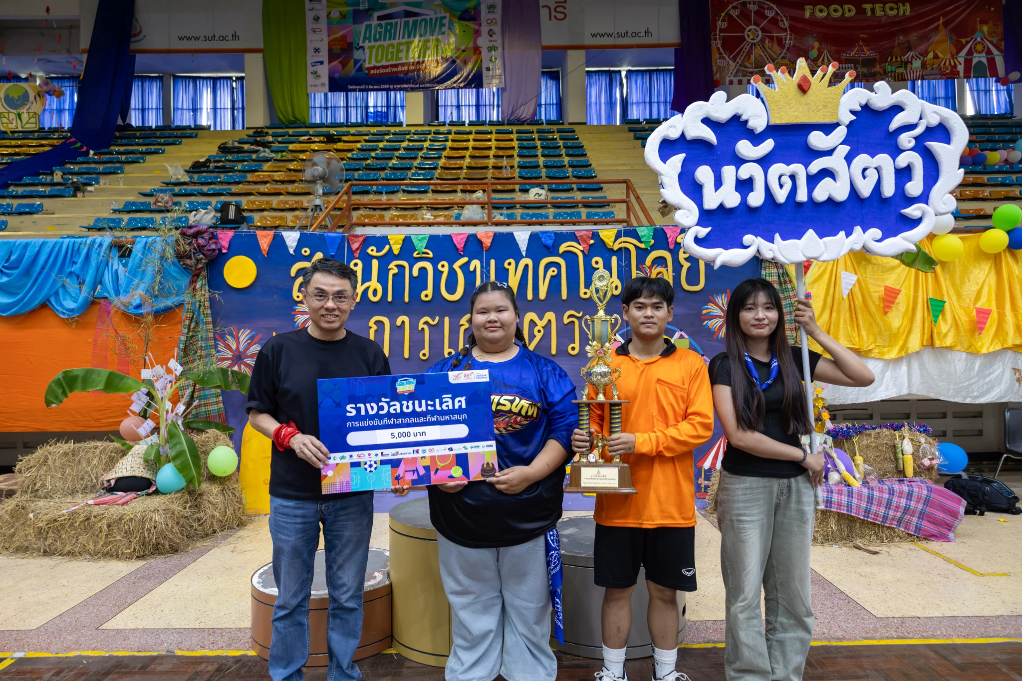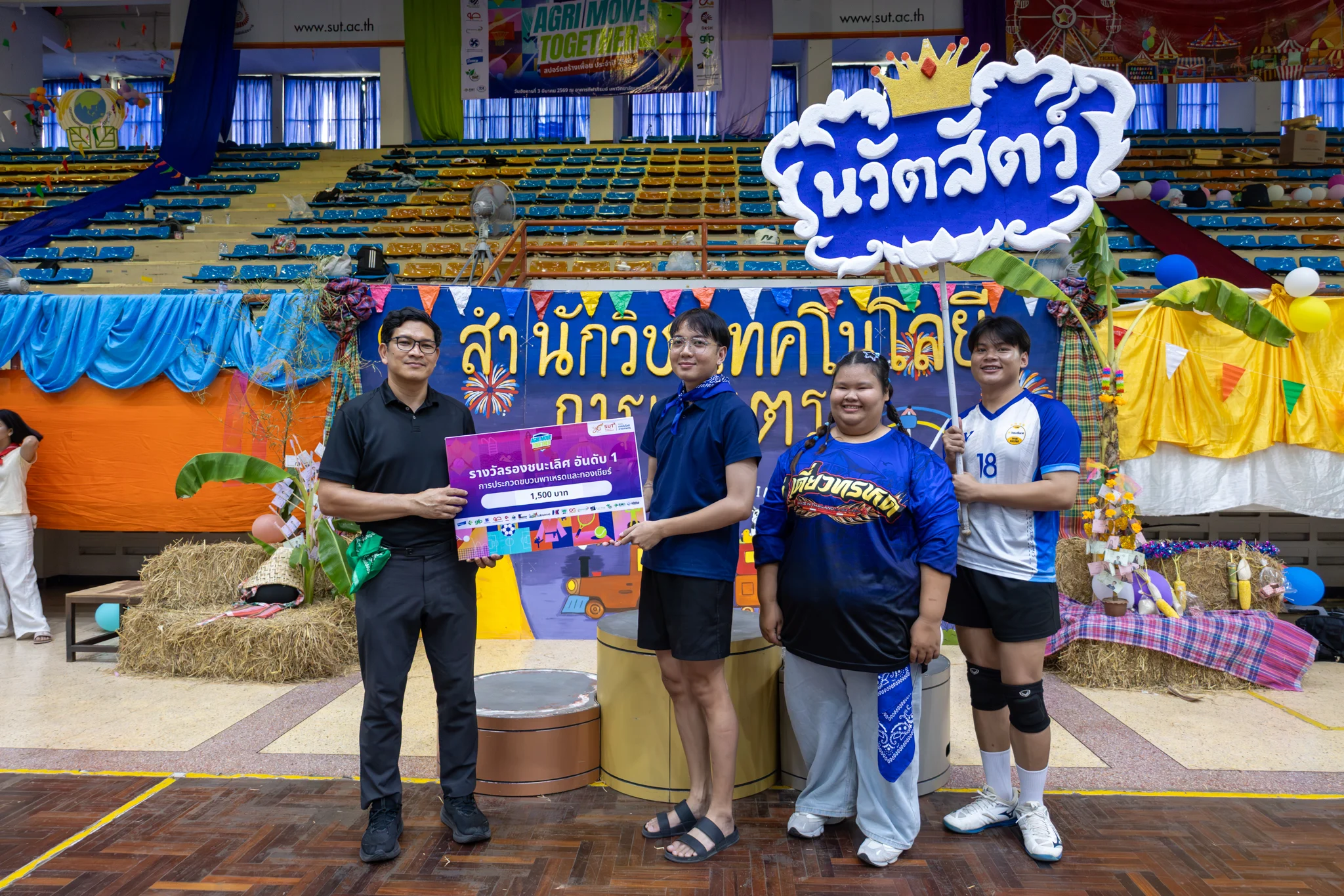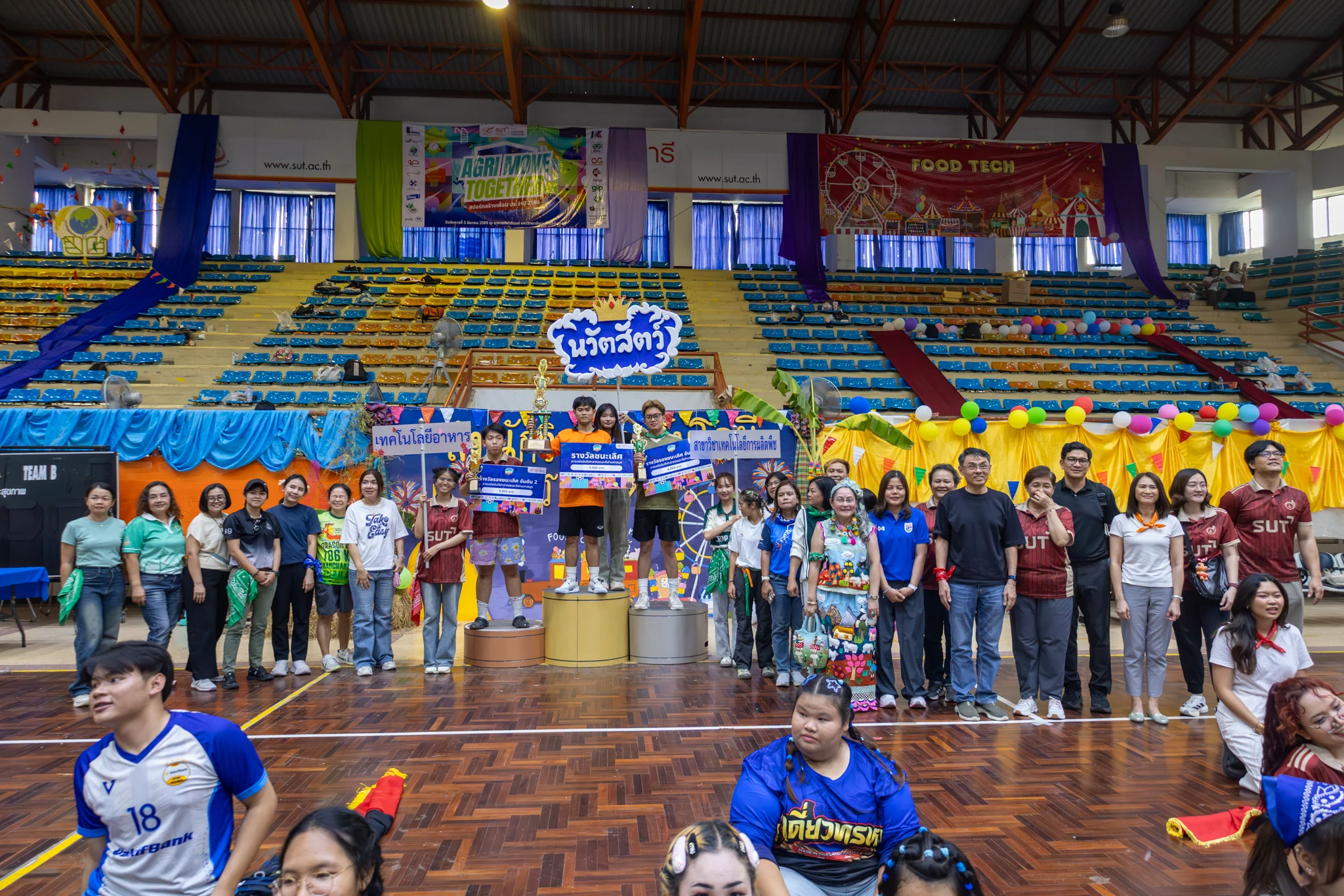 สำนักวิชาเทคโนโลยีการเกษตร มหาวิทยาลัยเทคโนโลยีสุรนารี จัดกิจกรรมกีฬาสีสัมพันธ์ “Agri Move Together : สปอร์ตสร้างเพื่อน ประจำปี 2569” เพื่อส่งเสริมสุขภาวะของนักศึกษาแบบองค์รวม ทั้งด้านร่างกาย จิตใจ และความสัมพันธ์ทางสังคม ผ่านการทำกิจกรรมกีฬาและกิจกรรมสันทนาการร่วมกัน ภายใต้บรรยากาศแห่งมิตรภาพและความร่วมมือของนักศึกษาในสำนักวิชา